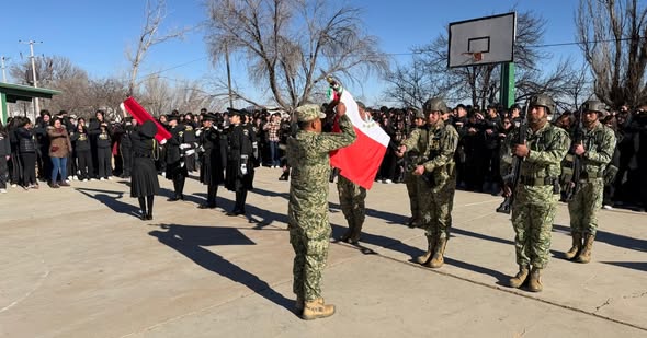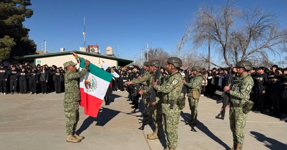 🧑En su mensaje, el Capitán de Infantería Daniel Tabares Cortes, destacó la importancia de la bandera como símbolo de unión y esperanza para los mexicanos: “la bandera es uno de los tres símbolos patrios más importantes y con un largo recorrido histórico, sintetiza lo que somos y lo que podemos llegar a ser”.