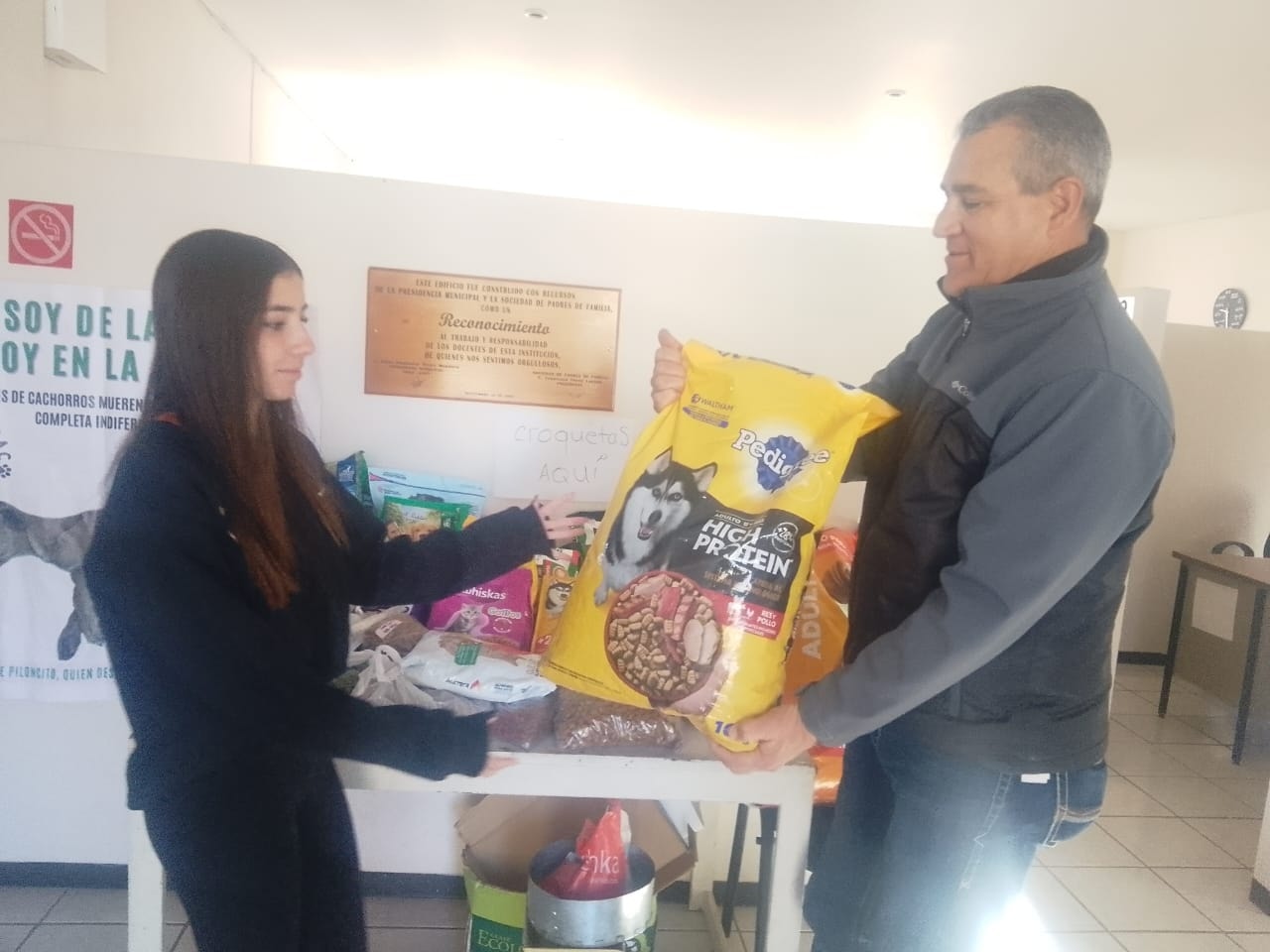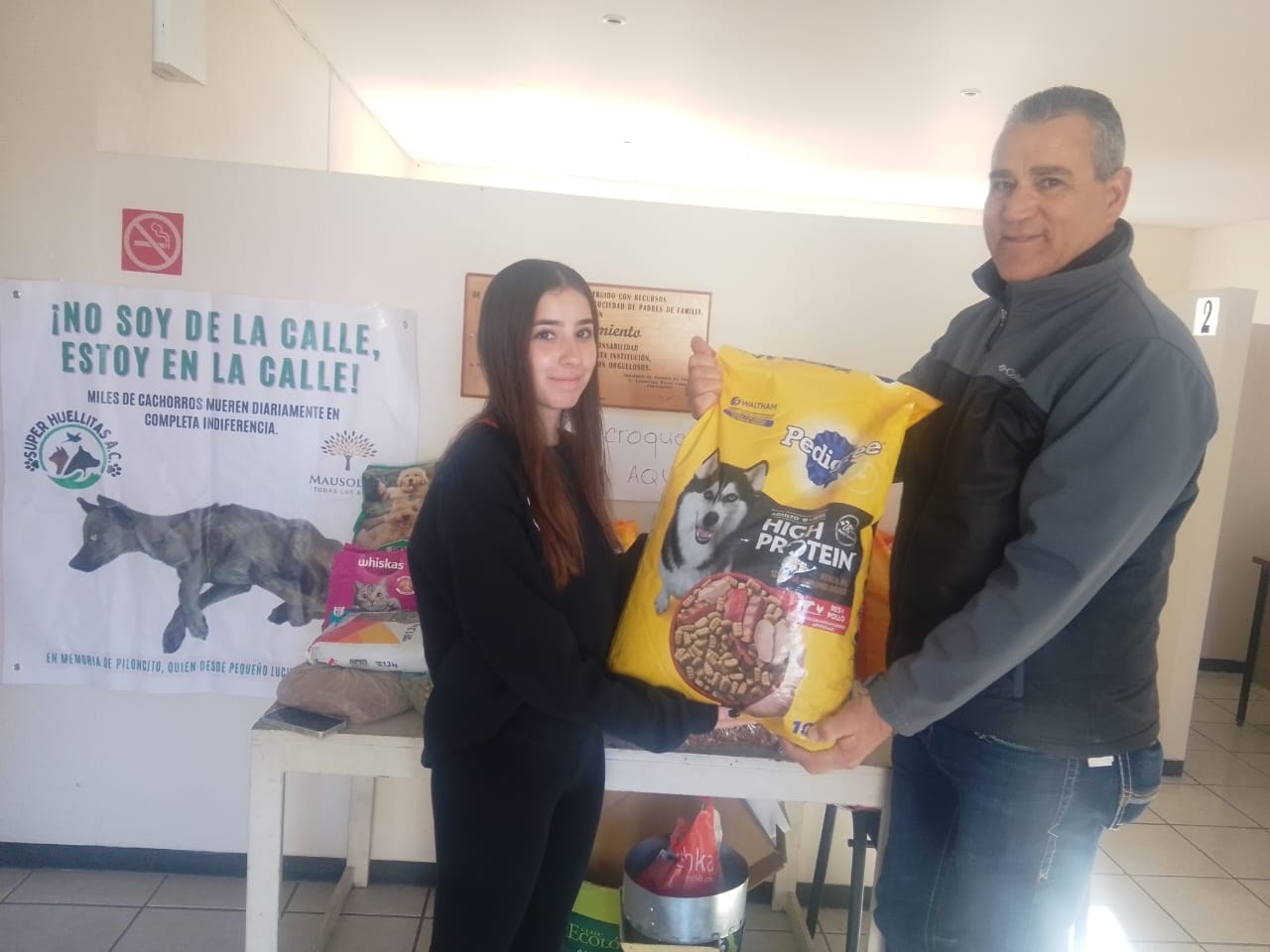 La asociaci贸n Superhuellitas A.C. acudi贸 al CBTa para recibir el alimento para perros y gatos recabado durante la 煤ltima semana. El donativo fue entregado por el profesor Elio Ar茅valo, encargado de l