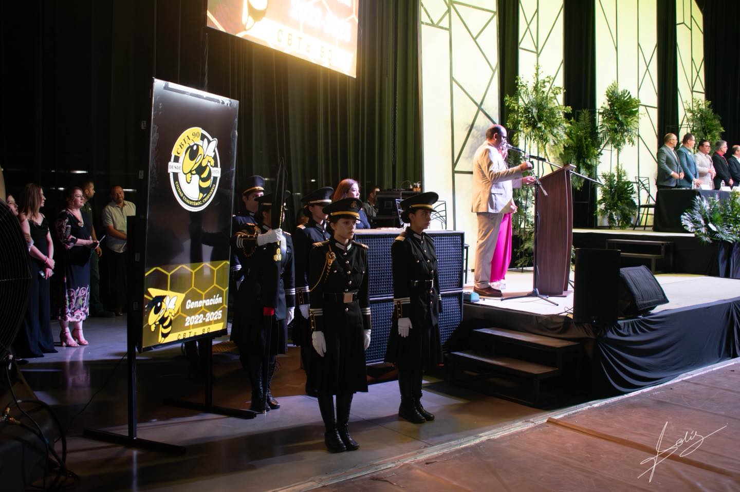 El evento dio inicio con la bienvenida oficial por parte del director del plantel, M.Ed. Manuel Antonio Terrazas Villanueva, acompañado de un presídium conformado por autoridades educativas y civiles de distintos niveles. Tras la presentación de los padrinos de generación, Norma Nidia Mendoza Silva, Claudia Ruiz Torres, Romelia Morales Gaytán, Blanca Gisela Morales Portillo y Socorro Sáenz Loya, se llevaron a cabo los honores a la bandera, con la entonación del Himno Nacional